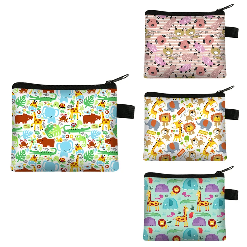 Мультфильм животных жираф слон лиса печати портмоне подростков кавайный кошелек портативный маленький животный узор сумки для помады подарок