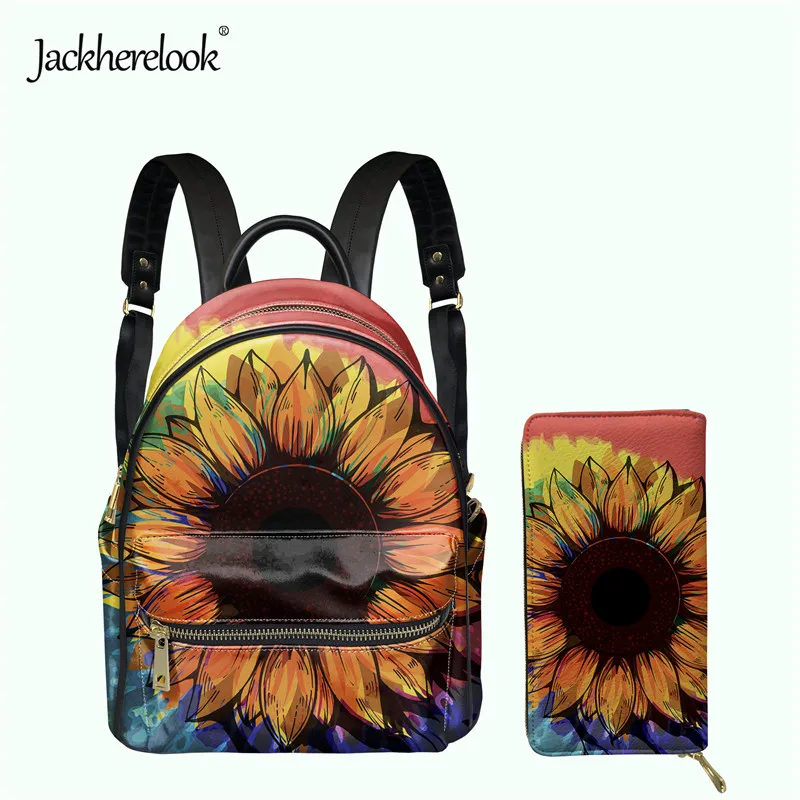 Jackherelook Красочный Большой дизайн подсолнуха женская сумка набор из ПУ кожи мини школьный рюкзак для девочек Женский кошелек с держателем для карт
