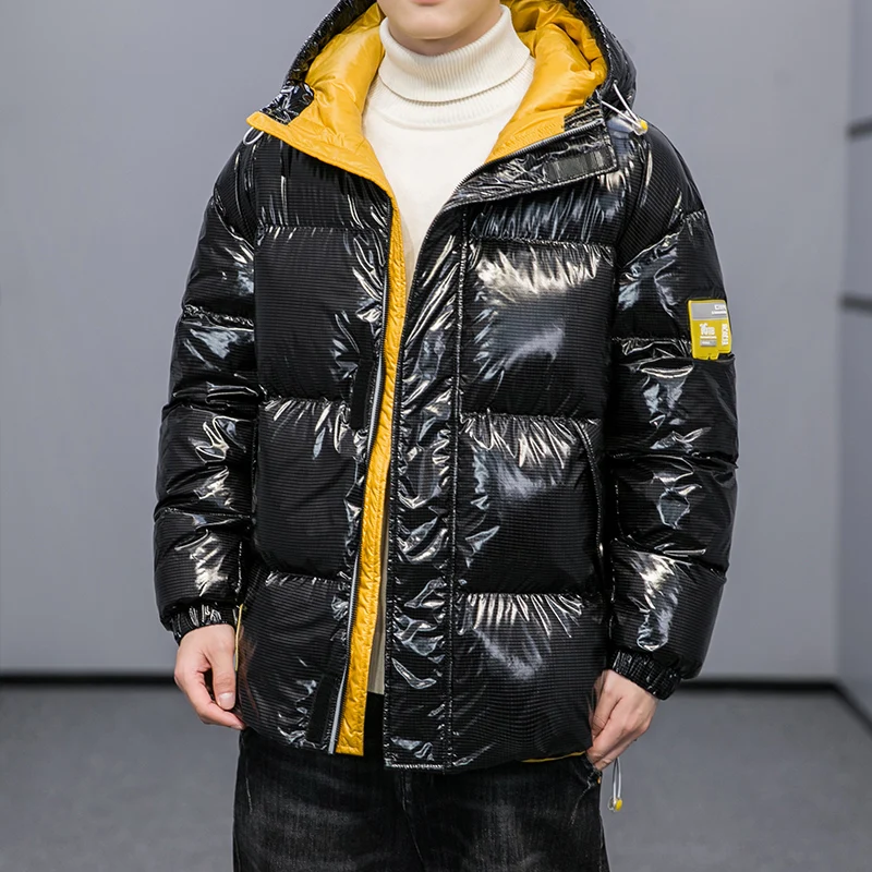 Пуховик мужской с капюшоном, модная теплая парка на белом утином пу...