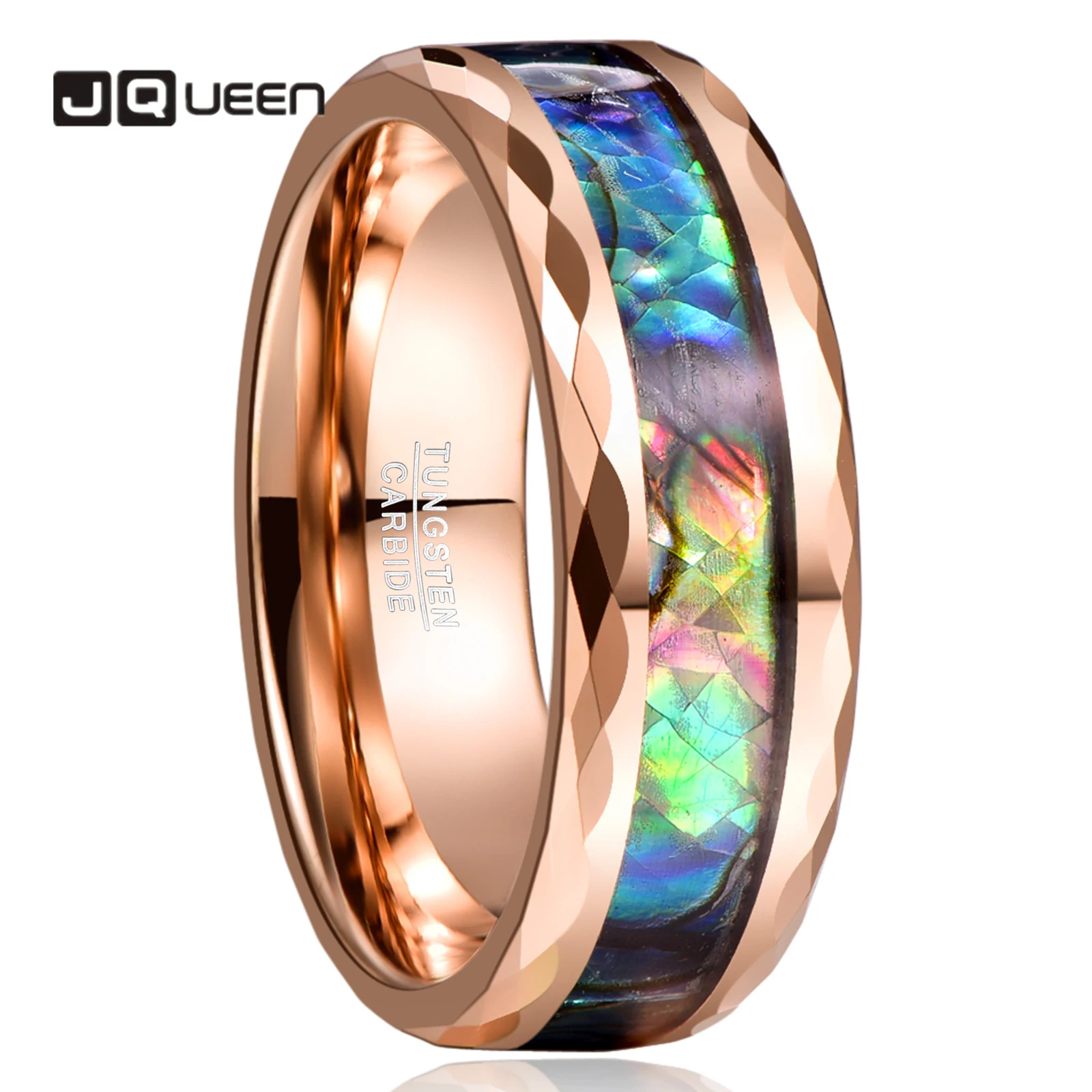 JQUEEN 8 мм гальванизированное розовое золото партия цветок инкрустированное Абалон оболочки вольфрамовое Карбидное стальное кольцо ювелирные изделия