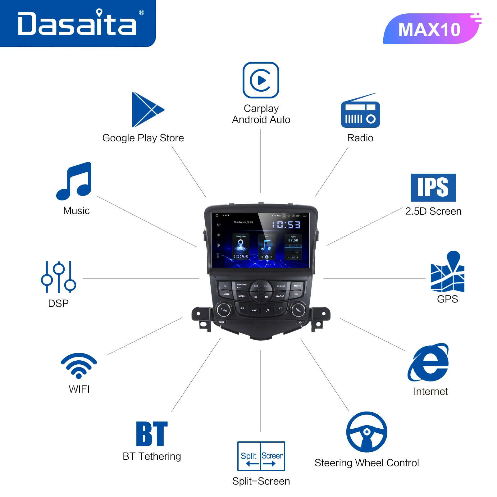Автомобильное радио Dasaita, мультисенсорный экран 8 дюймов, 2 Din, GPS для Chevrolet Cruze 2008, 2009, 2010, 2011, автомобильная навигация, Android 10,0, TDA7850