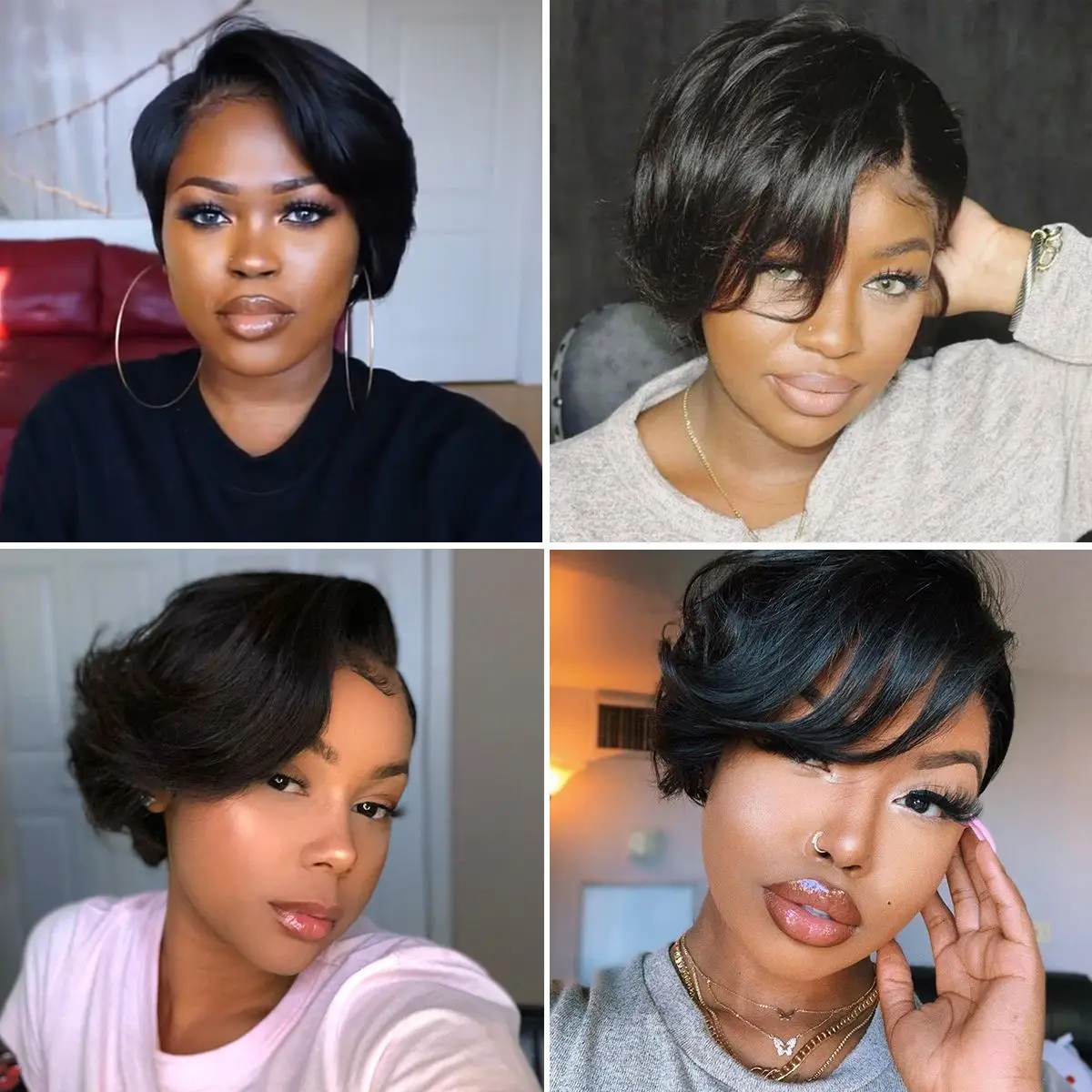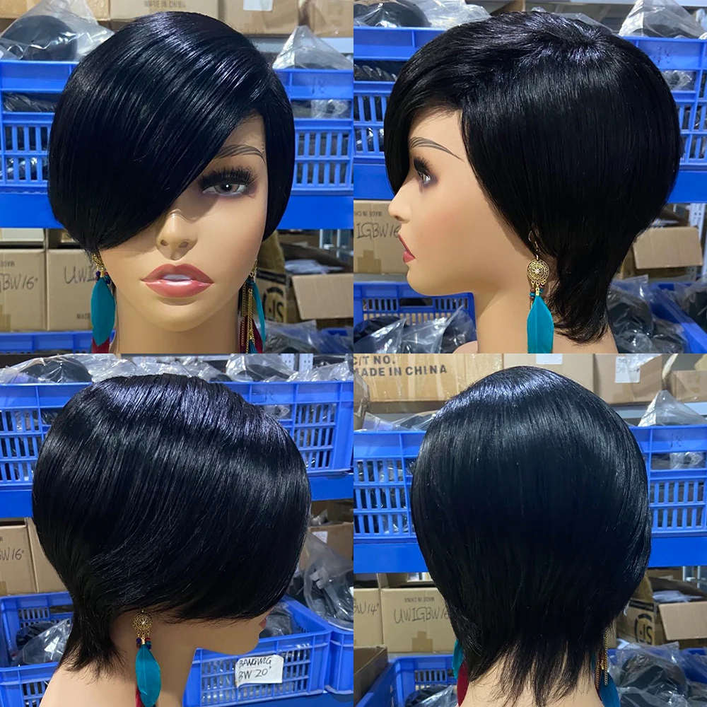 Парик из натуральных волос с челкой, с короткой стрижкой Пикси, пря...