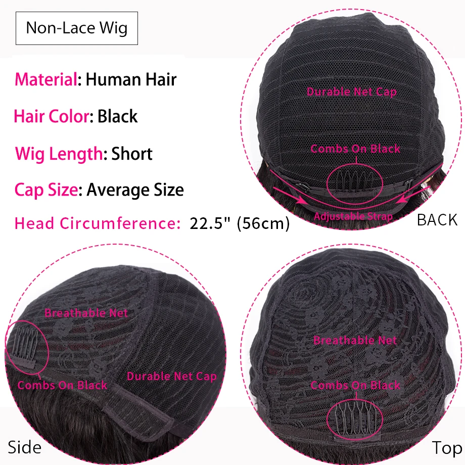 Парики для вырезания фальшивой, короткие прямые человеческие волосы...