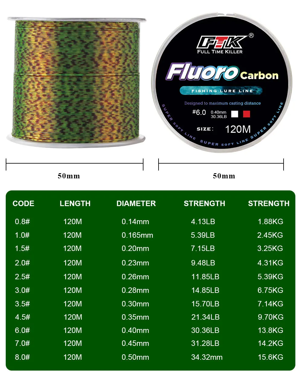 Фторуглеродная леска FTK, 120 м, сверхпрочная пятнистая леска Sinki...
