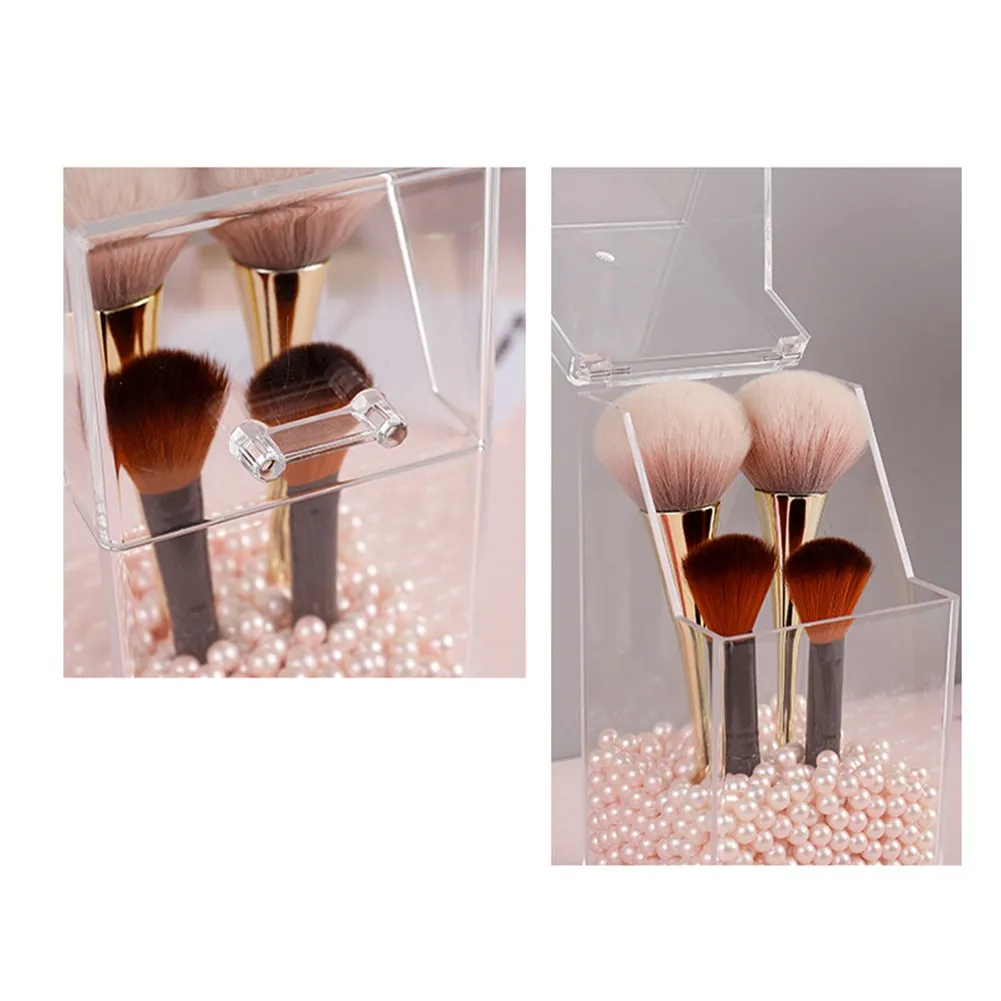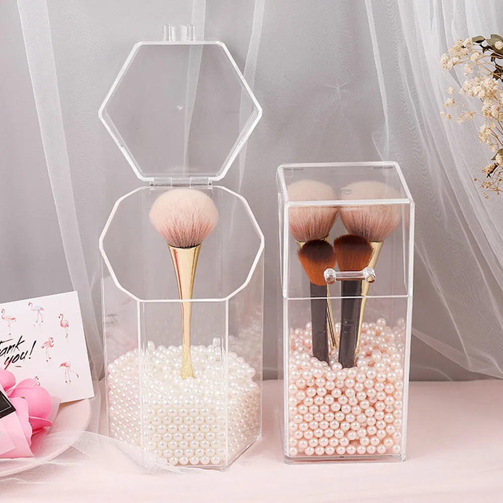 Квадратная жемчужная косметичка, прозрачная флип-Пылезащитная Косметическая щетка, бочка для кистей для бровей, акриловая коробка для хранения карандашей для бровей
