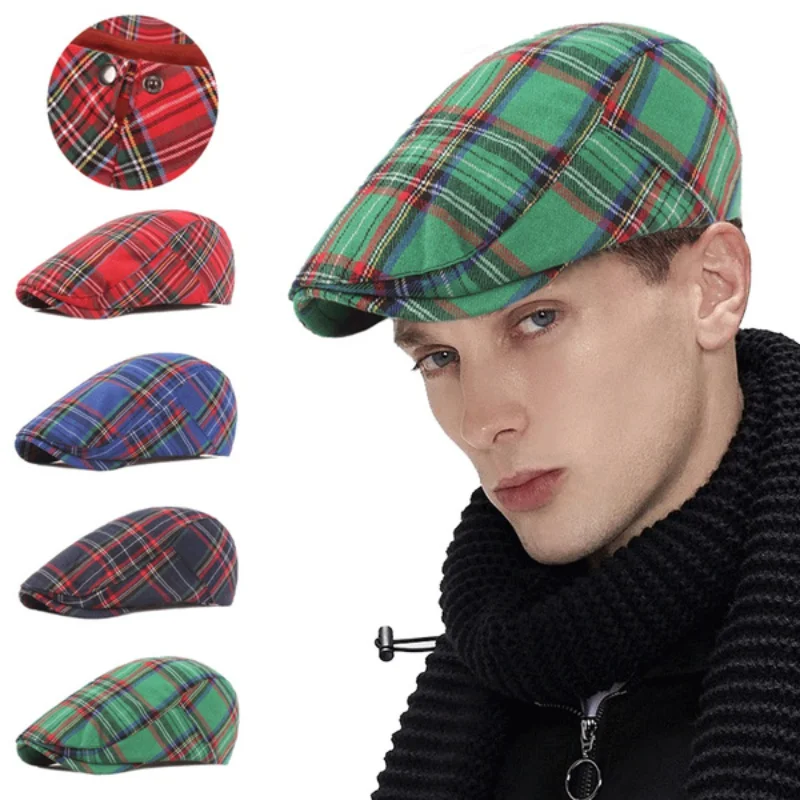 Классические мужские и женские береты в клетку в стиле Englad, повс...