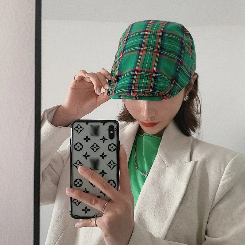 Шапка в французском стиле, клетчатый берет, Женская весенне-летняя ...