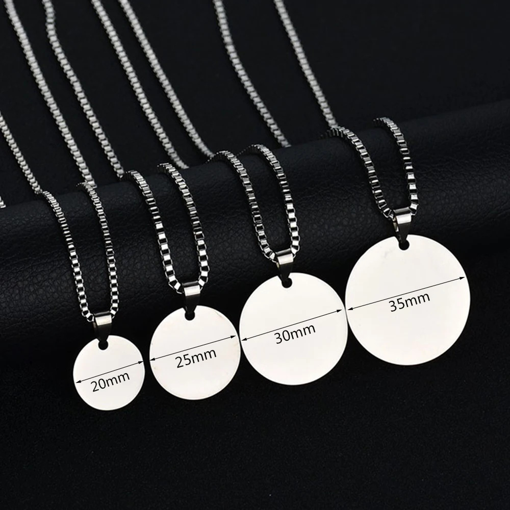 Ожерелье унисекс из нержавеющей стали с круглой биркой и лазерной гравировкой