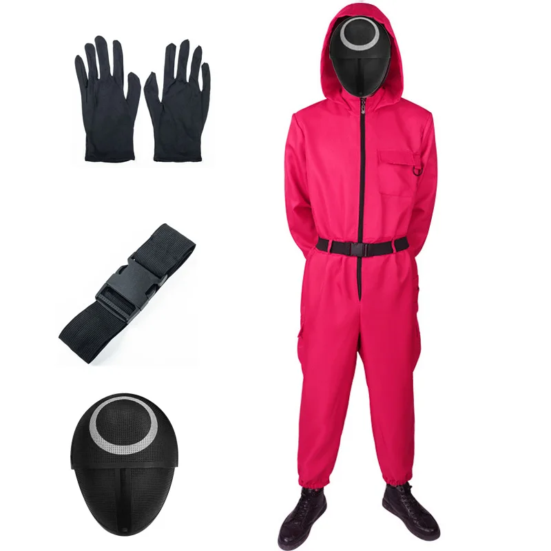 Костюм для косплея из игры кальмар, комбинезон с капюшоном и маской...