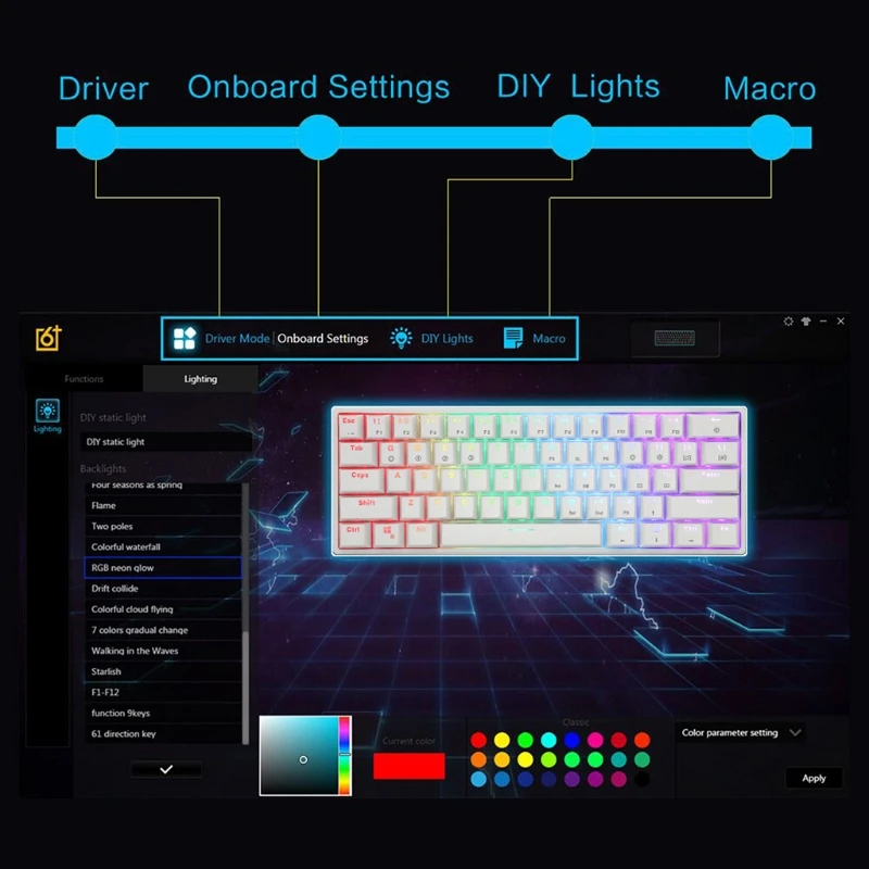 GK61 61 Ключ USB проводной светодиодный с подсветкой Axis игровая м...
