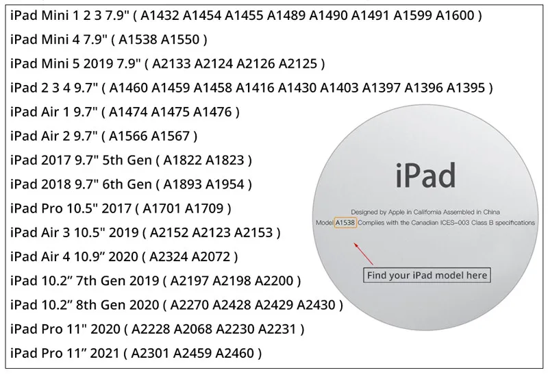 Model 1For iPad Mini 1 2 3 (A1432 A1454 A1455 A1489 A1490 A1491 A159