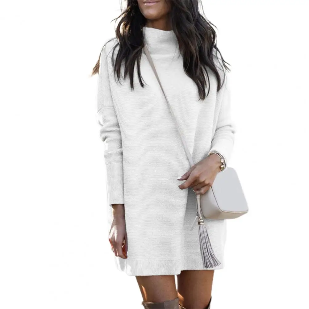 Casual Sweater Dress Mini Short Thick O-neck Long Sleeve Spring Winter Dress 2021 Slim Fit Ladies Knitted Fashion VestidosSpring And Autumn Ladies Knee-Length Dress Hooded Warm Sweatshirt Long Sleeve Camp Collar Pocket Simple Casual Sports Dress