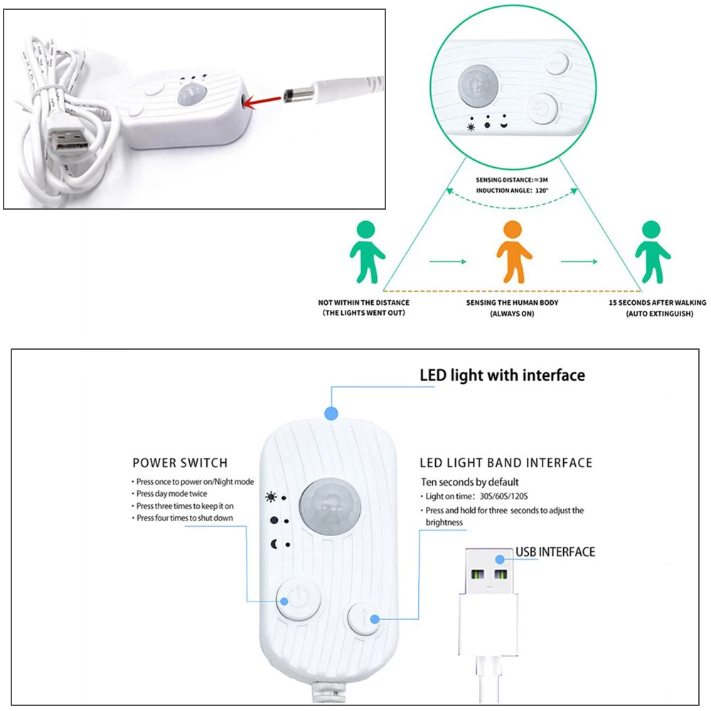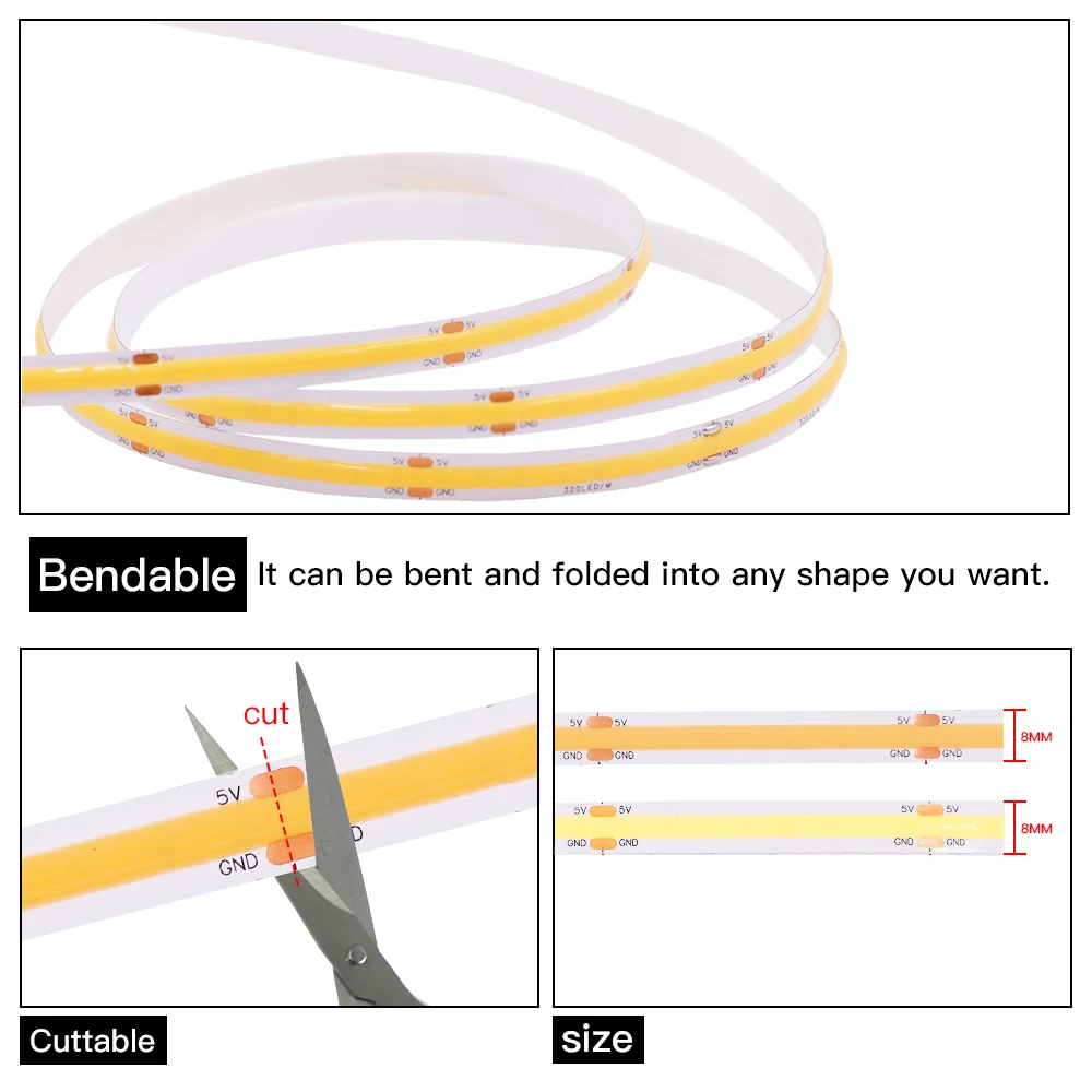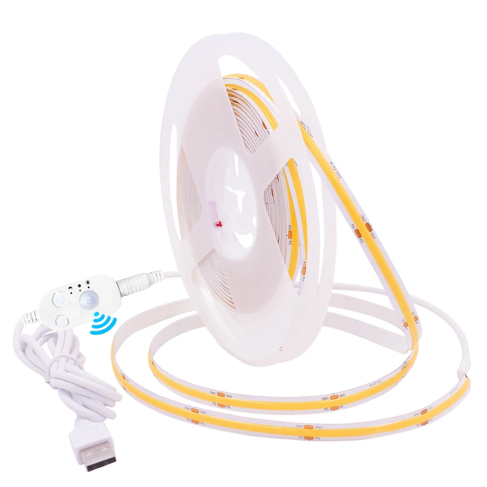 Фонарь с пассивным инфракрасным датчиком движения FOB COB Light s DC 5 В, питание от USB, монолитный блок светодиодных лент, высокая плотность, 320 светодиодов, ленточный шнур, гибкая светодиодная лента