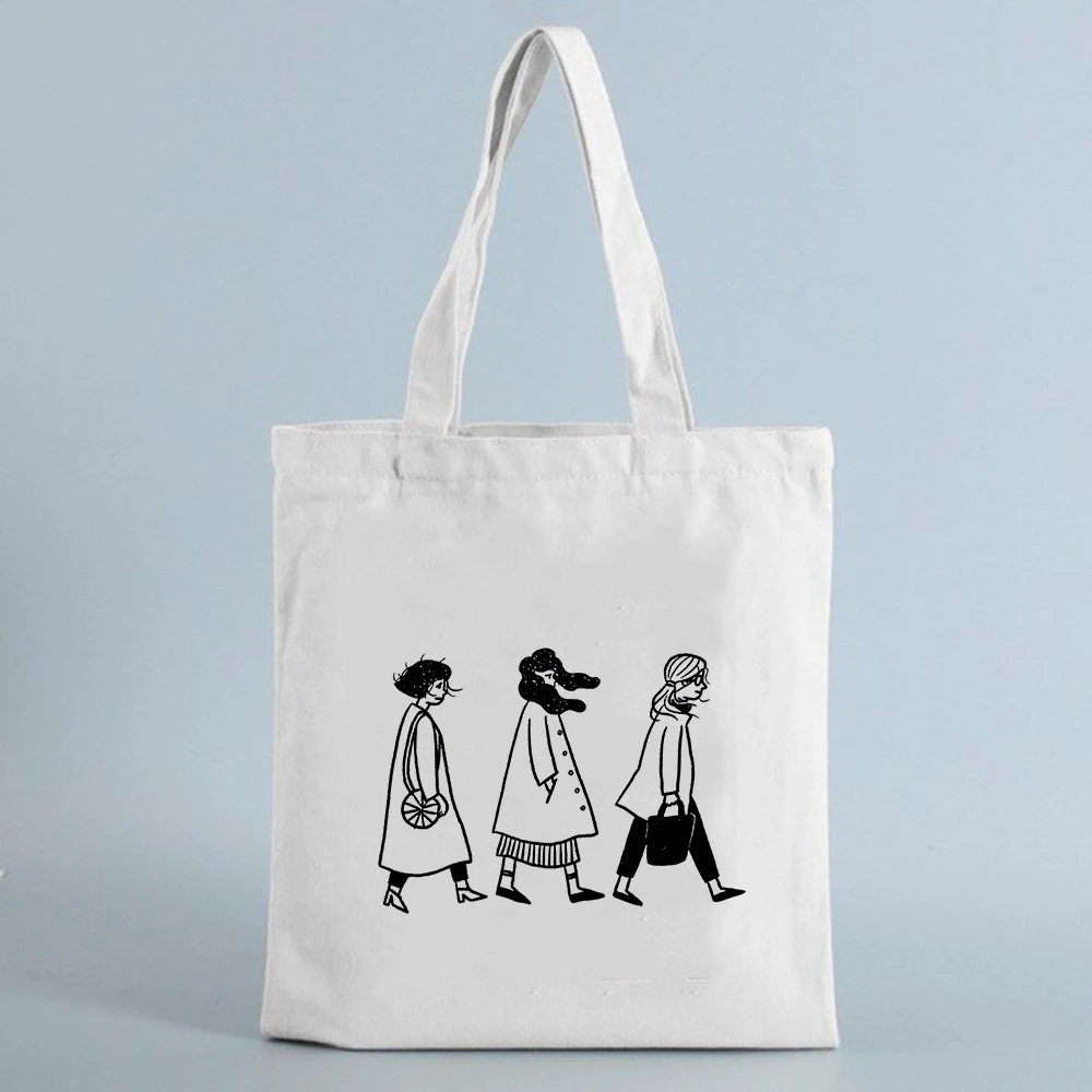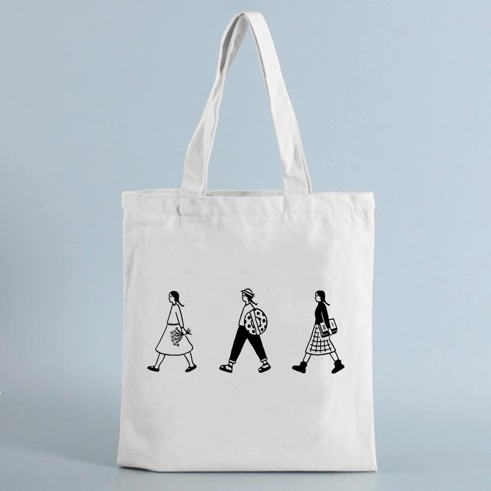 Холщовая Сумка-тоут для покупок с принтом для девушек, многоразовая...