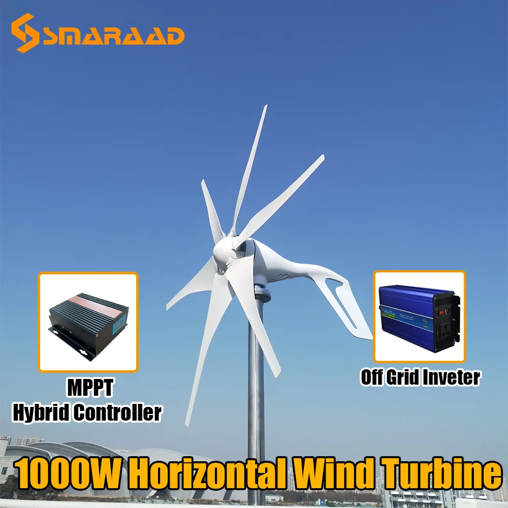 Новый генератор энергии 1000W12V 24V 48V Бесплатная альтернативной энергии бытовой ветряные мельницы и MPPT гибридный контроллер внесетевой зарядки