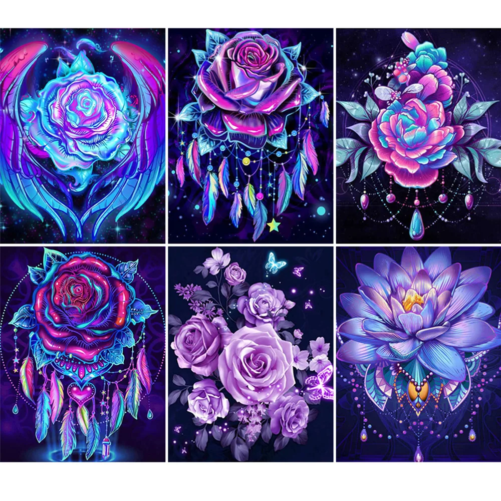 5D Diy алмазная живопись, с цветочным принтом розы полный кругкамни...