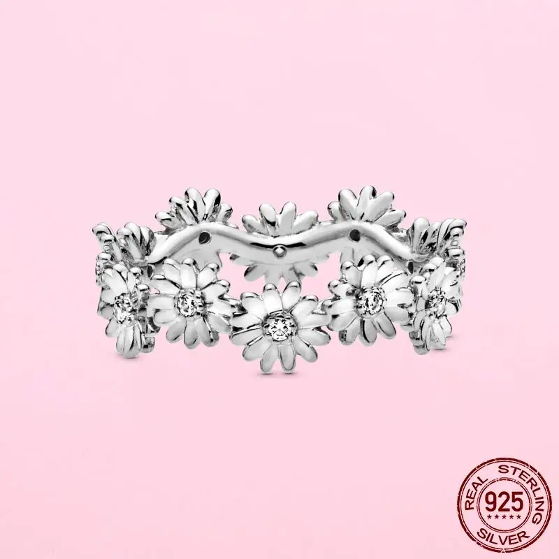 Женское кольцо из серебра 925 пробы с цветами ромашки