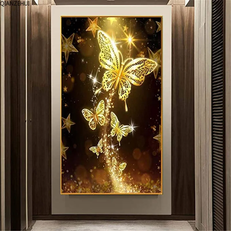 QIANZEHUI, алмазная 5D Вышивка своими руками, круглая Алмазная бабочка, алмазная 5D Вышивка крестиком