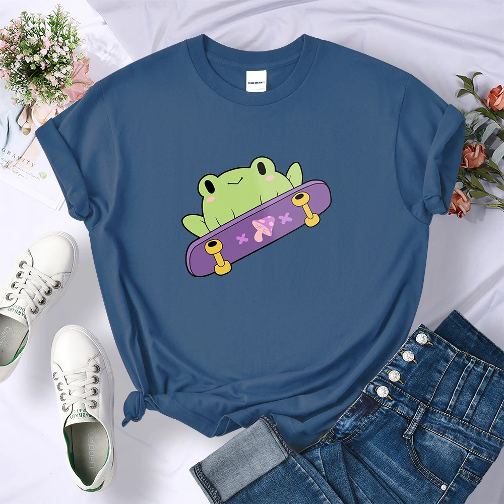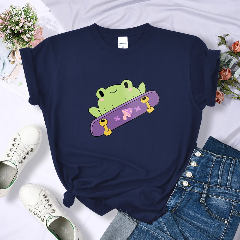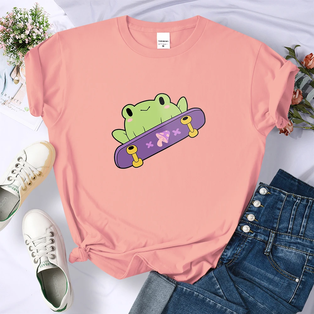 Футболка женская с принтом лягушки и металлическим принтом, милая дышащая повседневная простая Свободная рубашка, модный Повседневный Топ