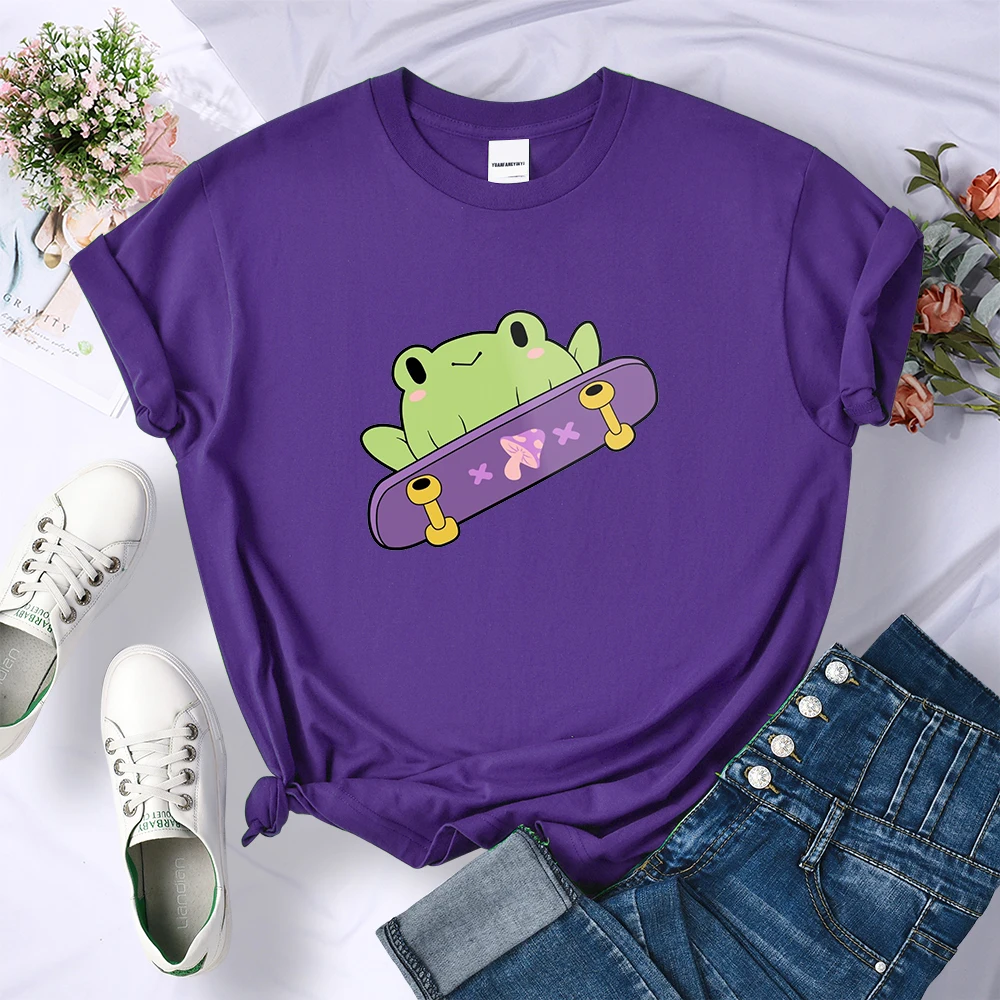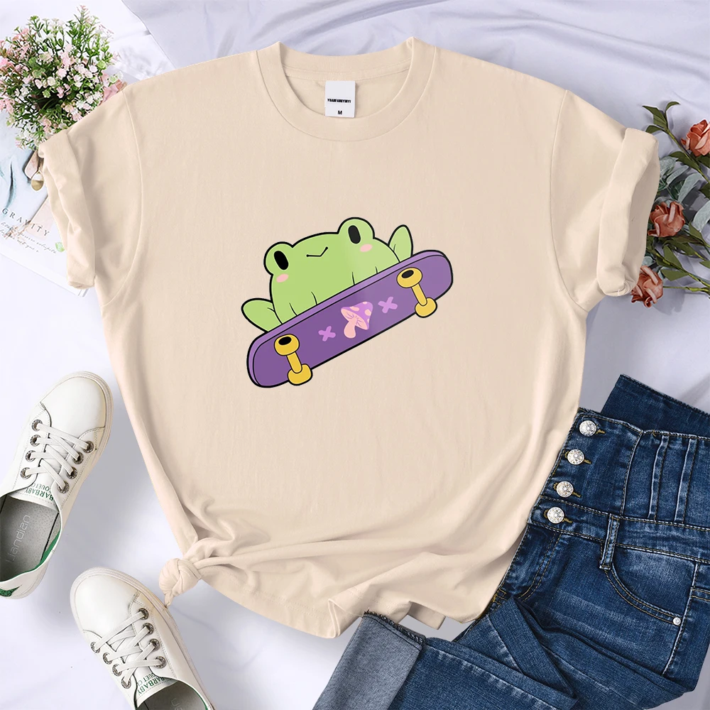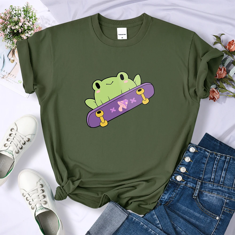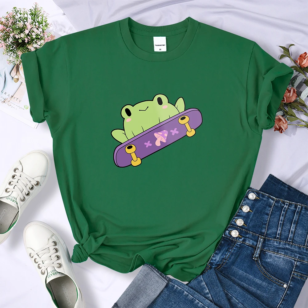 Футболка женская с принтом лягушки и металлическим принтом, милая дышащая повседневная простая Свободная рубашка, модный Повседневный Топ