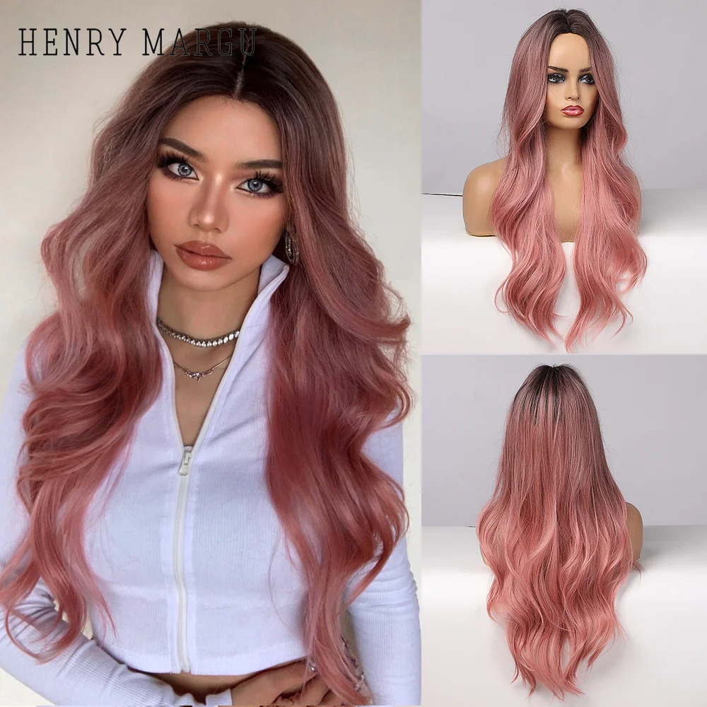 Женские длинные волнистые парики henmargu, коричневые, Платиновые, светлые синтетические парики с эффектом омбре, термостойкие парики из натуральных волос Лолиты для косплея и вечеринки