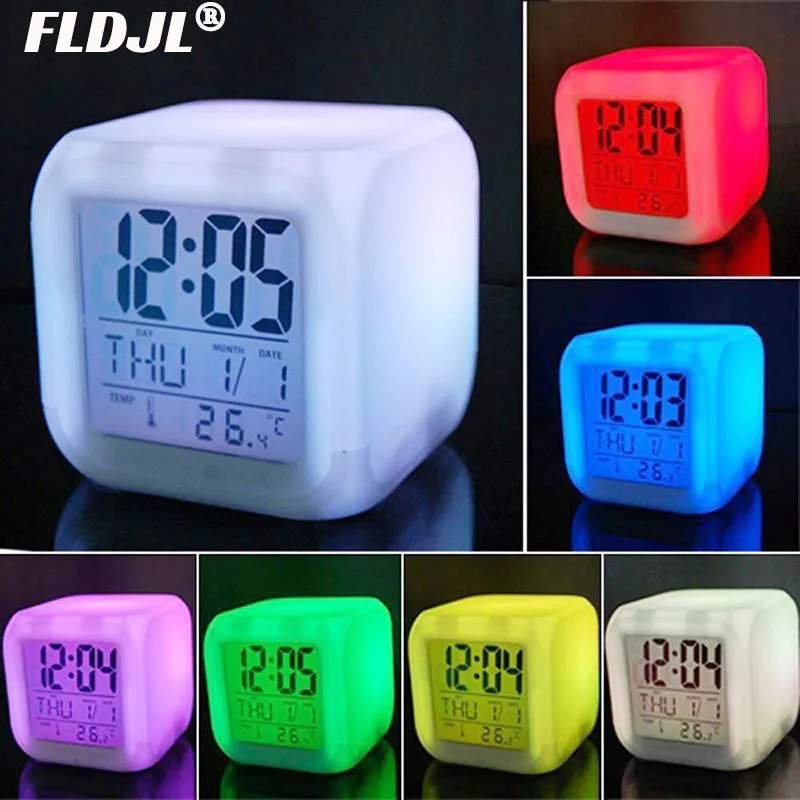 Светодиодный Будильник, 7 цветов, меняющий цвет, цифровой Настольны...
