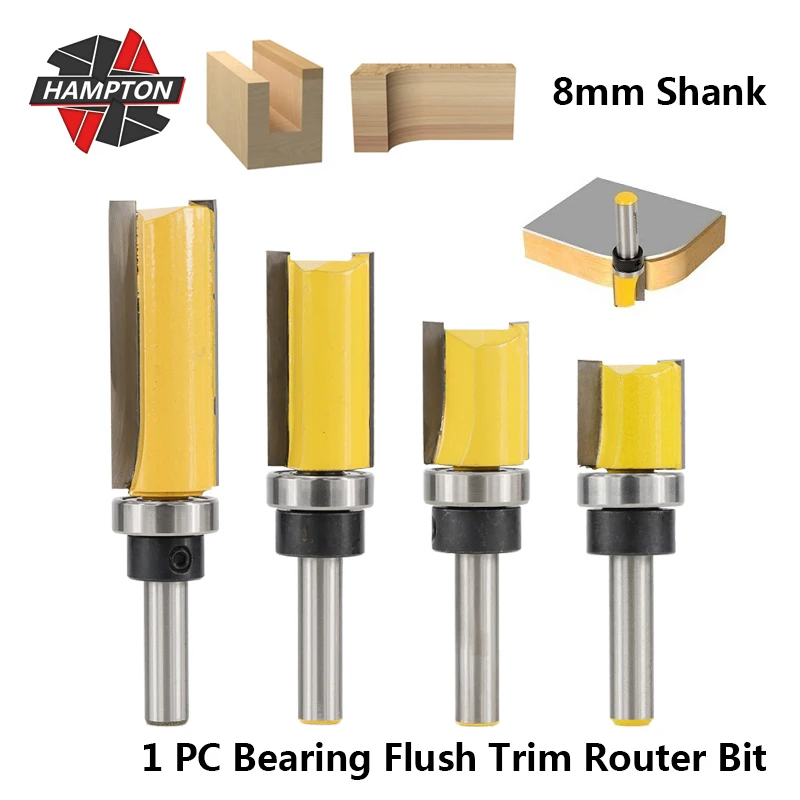 Фреза утопленная с подшипником Hampton, Концевая фреза с хвостовиком 8 мм, фреза из карбида вольфрама, инструменты для деревообработки