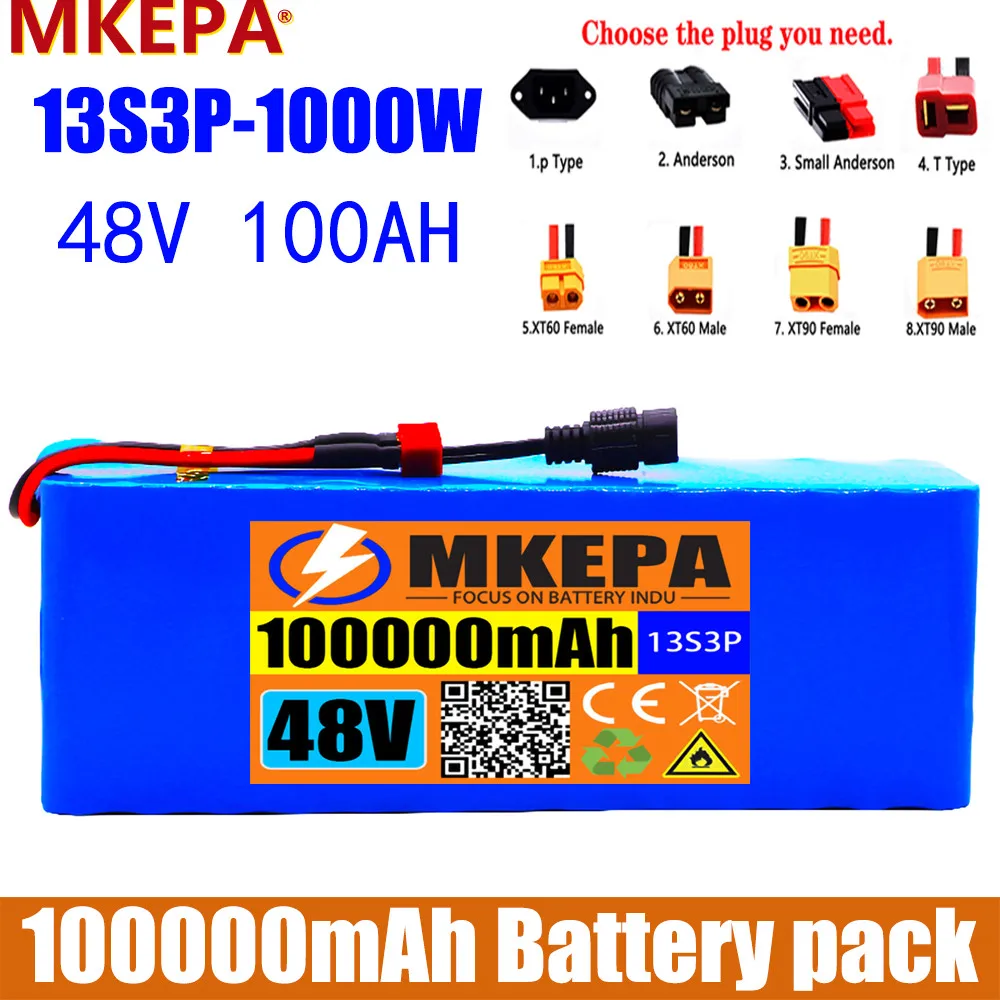 Литий-ионный аккумулятор высокой емкости 48 в 100000 мАч 1000 Вт 13S3P для электрического велосипеда скутера 54,6 в с BMS