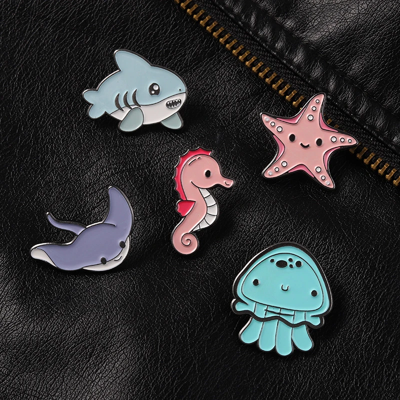 Брошь в виде морского конька, морской звезды, акулы, милого дьявола, брошь с рыбой, морская жизнь, новая серия морских животных из сплава, брошь на рюкзак, значок