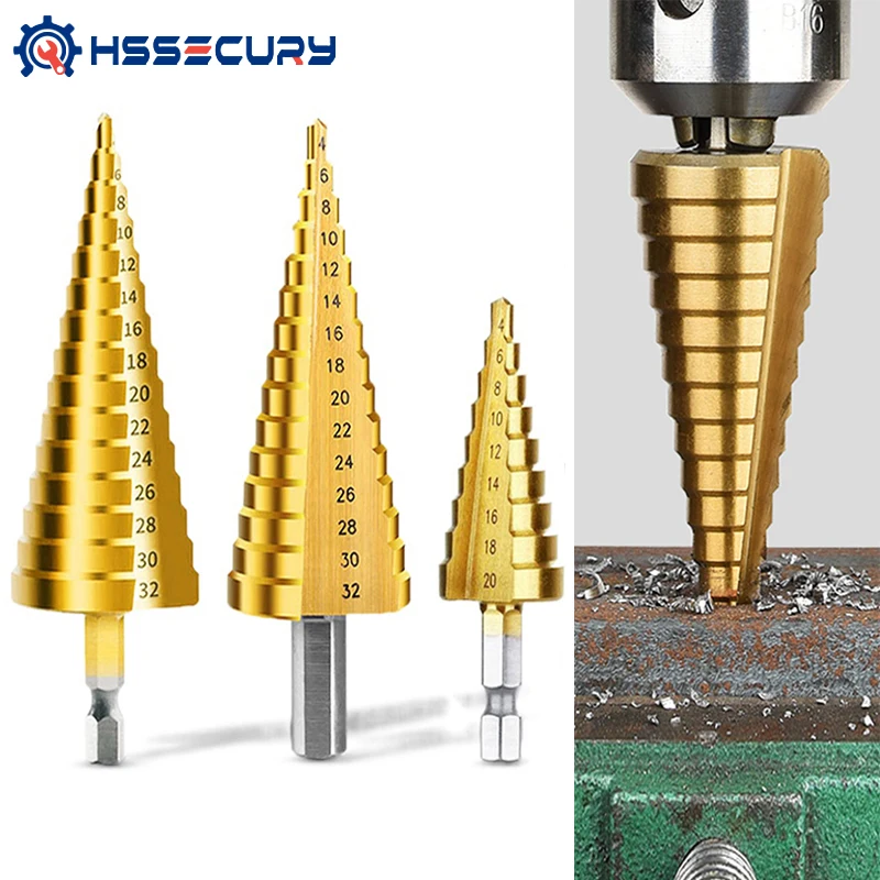 Быстрорежущее титановое сверло 4-12 4-20 4-32 ступенчатое сверло для древесины электроинструменты металлическое высокоскоростное стальное сверло для отверстий ступенчатое Коническое сверло