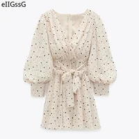 Модное сексуальное женское платье 2021 мини-платье в горошек с длинным рукавом и v-образным вырезом на молнии, открытое и закрытое белое летнее женское платье