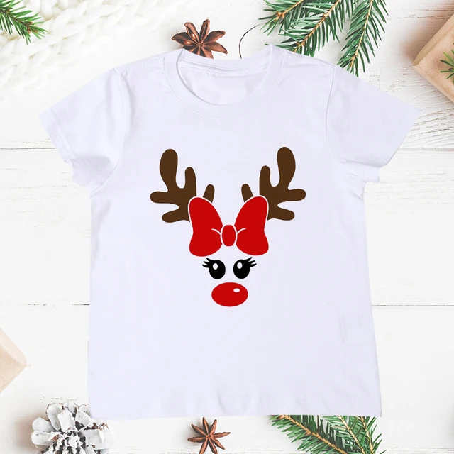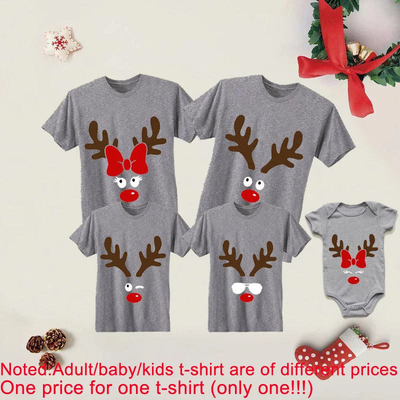 Семейная Рождественская футболка с оленем и елкой, комплекты одежды...