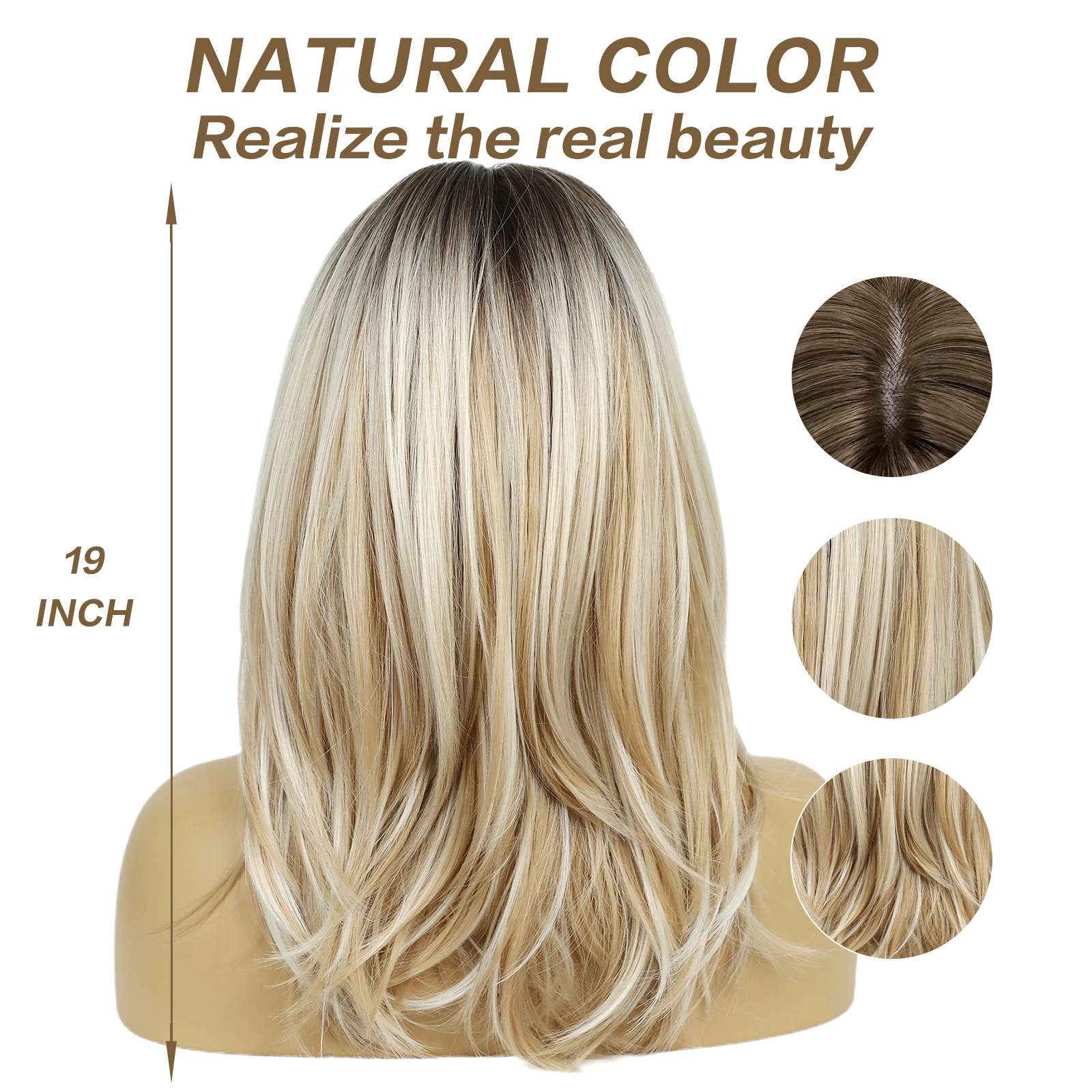 Длинные волнистые парики блонд Омбре, парики с темными корнями сред...