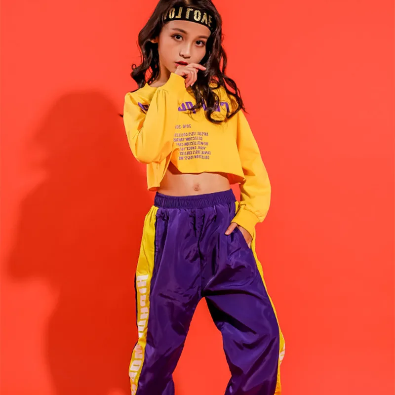 Спортивный костюм для девочек, Свитшот и Джоггеры в стиле хип-хоп, короткий топ для детей, уличная одежда, спортивные штаны, танцевальная одежда для подростков