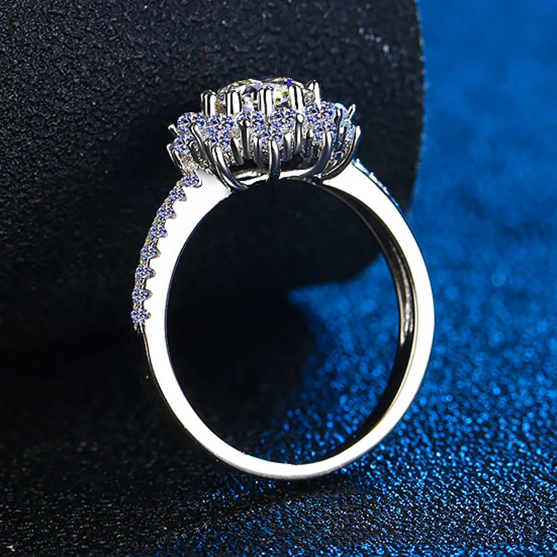 Роскошное обручальное кольцо из стерлингового серебра Moissanite, 1 карат GRA, сертифицированное лабораторное кольцо с бриллиантом, Женское Обручальное кольцо с цветком