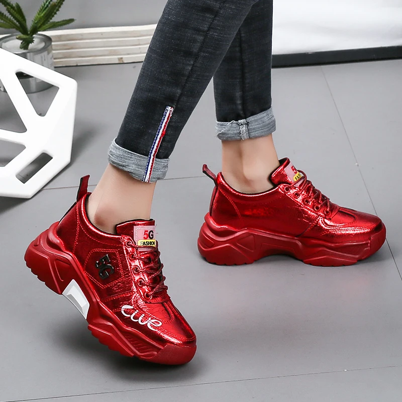 Женские Красные кроссовки размера плюс 41 42, Повседневная зимняя обувь, сохраняющие тепло кроссовки на платформе с меховым подкладом, женский теннис