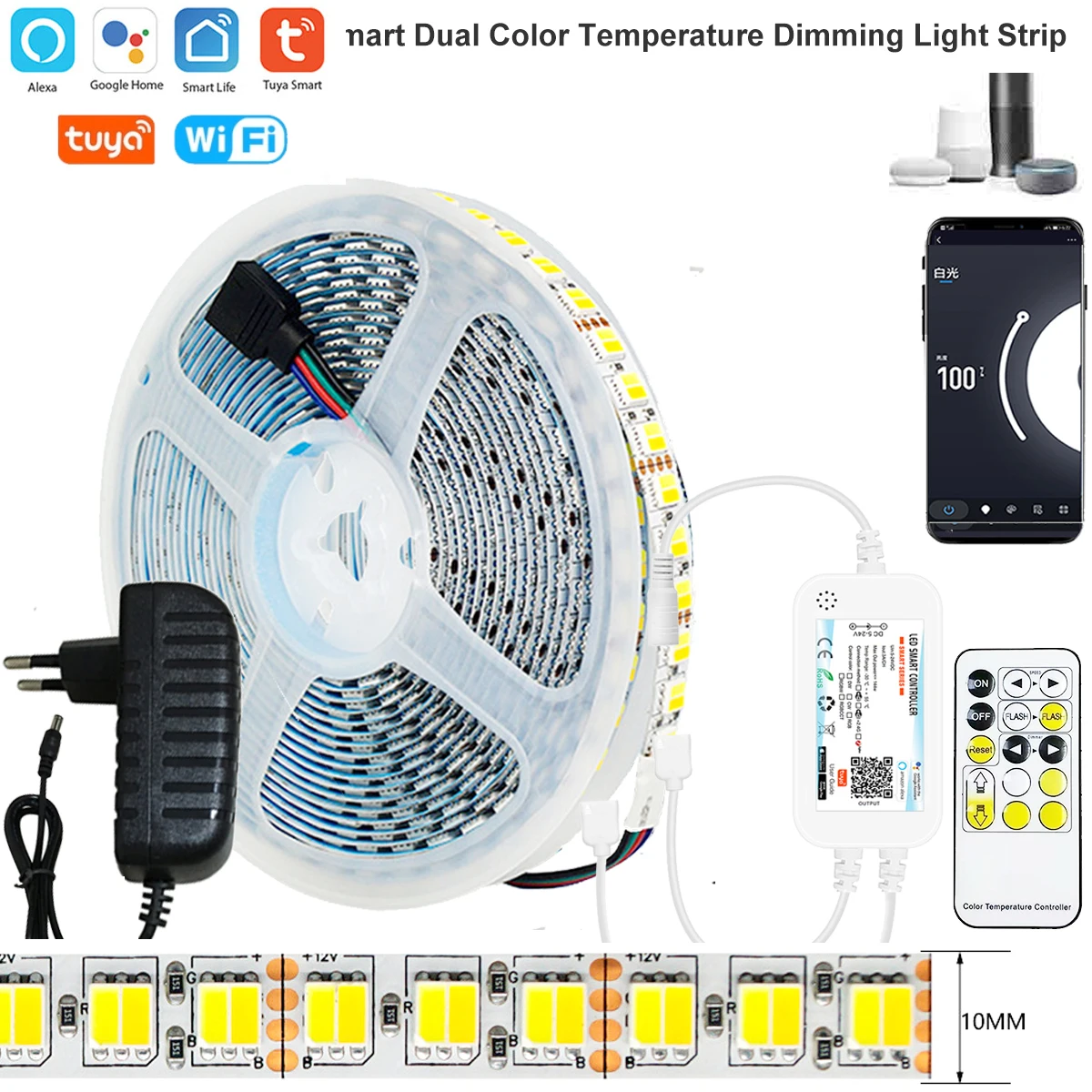 2 м 120 светодиодный комплект s CCT (1*2 м 5050 CW / WW светодиодный + 1 * контроллер + 1 * 12V2A EU/US/AU/UK адаптер питания)