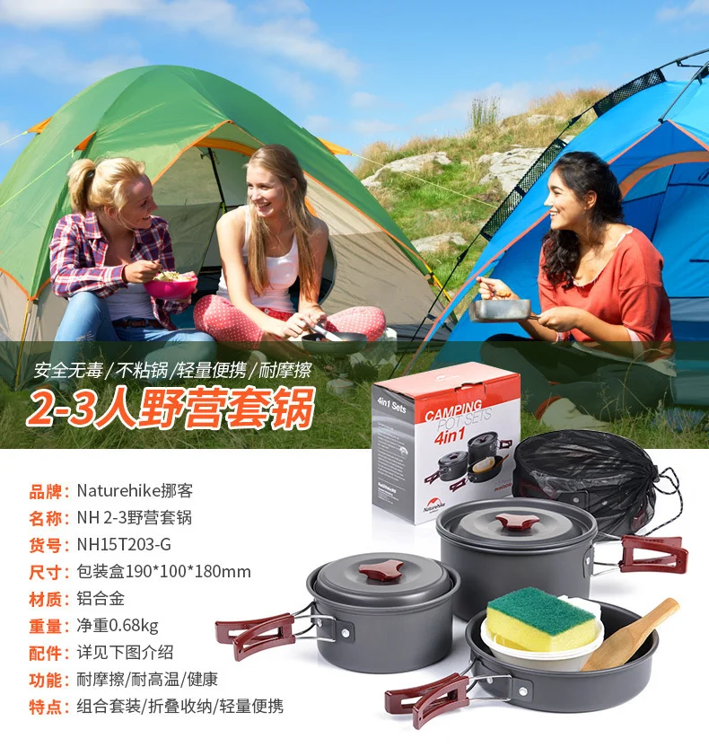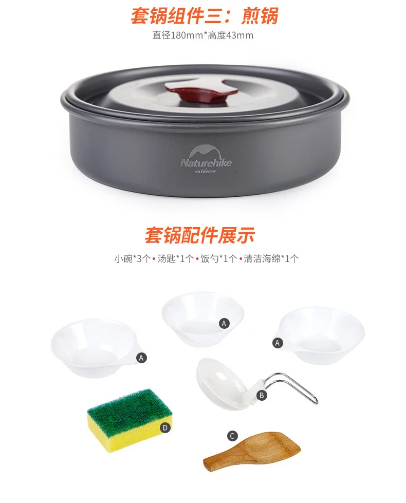 Набор посуды Naturehike 4 в 1, посуда для отдыха на открытом воздухе, для кемпинга, походов, пикника на 2-3 человека, портативная посуда, сковорода, миска, горшок, складной