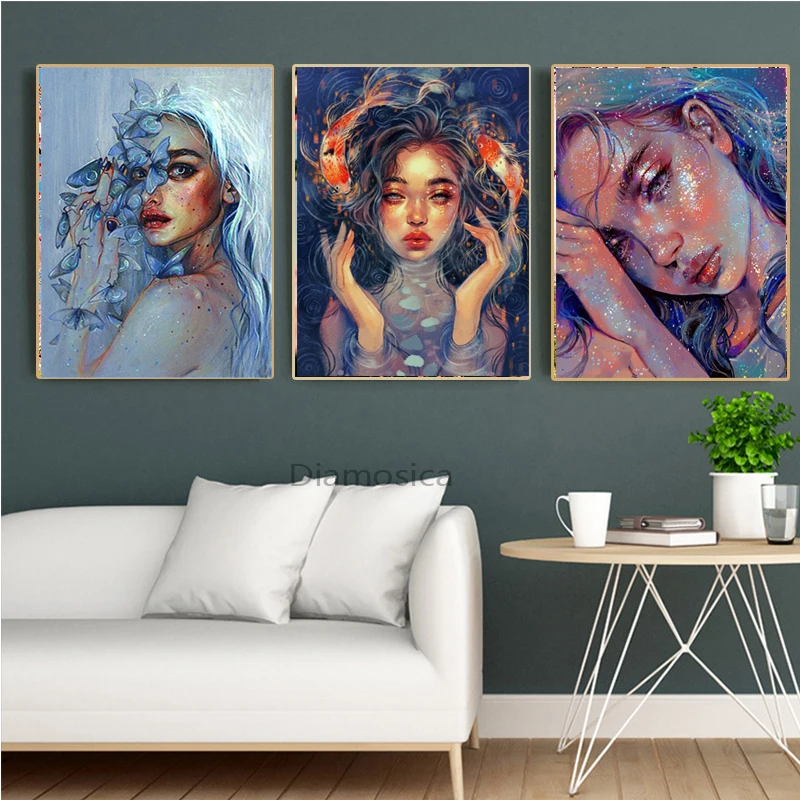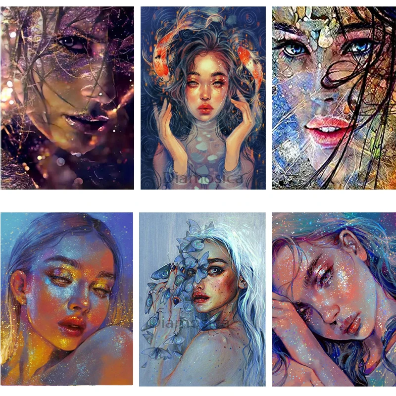 Алмазная живопись, Набор для творчества, картина, портрет девушки, стразы, круглая квадратная вышивка, наборы для вышивки крестиком, алмазная вышивка