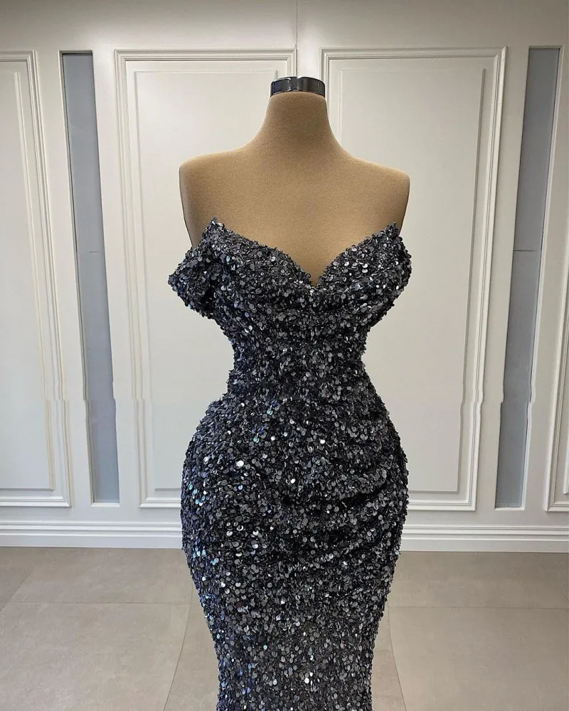 Женское вечернее платье-русалка, синее платье с разрезом спереди и блестками, платье в арабском стиле для выпускного вечера, 2022