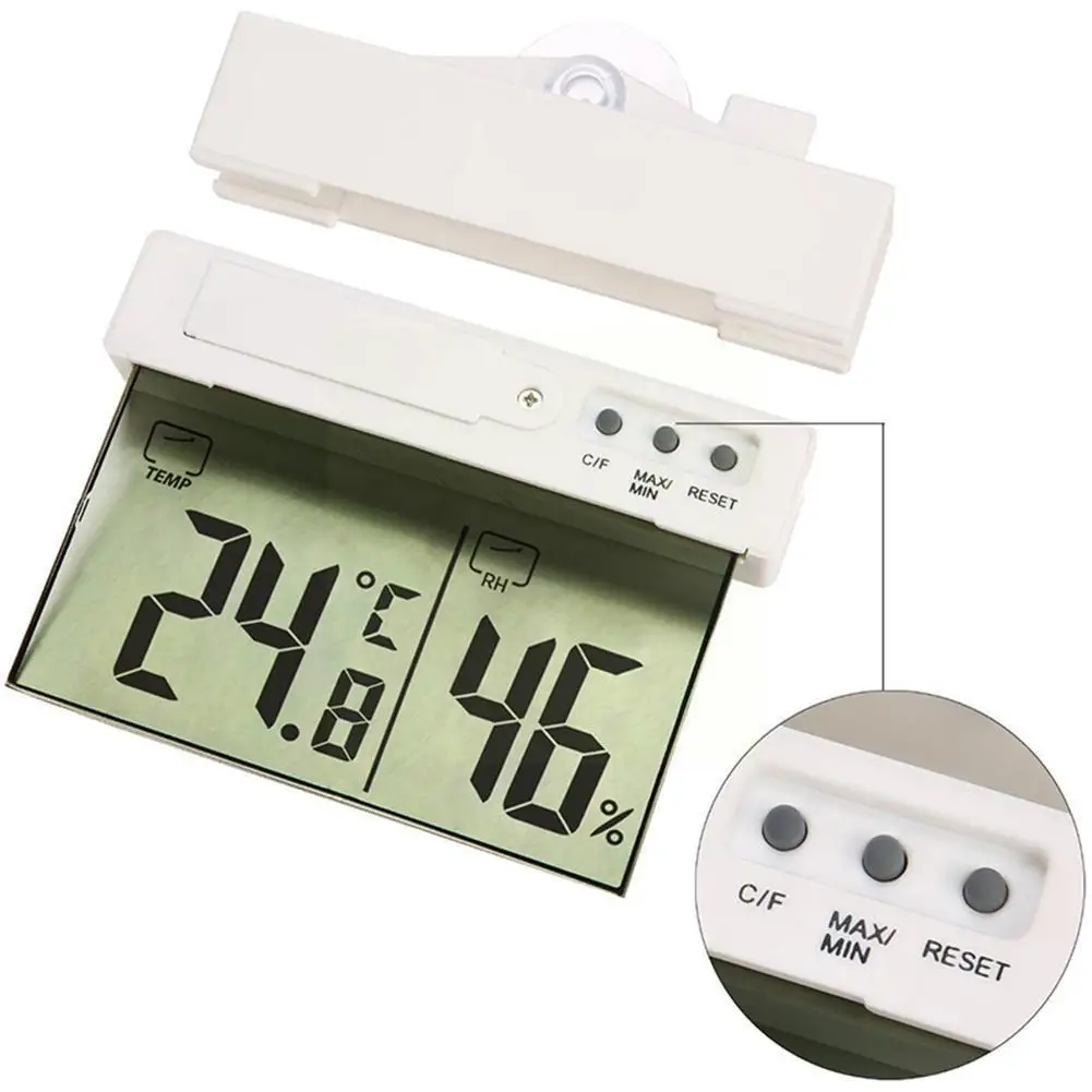 Особенности:ЖК-цифровой оконный комнатный/наружный термометр/гидрометр с присоской и клейкой лентой для легкого монтажаИзмеряет и отображает температуру (по Цельсию или по Фаренгейту) и влажностьБольшой, легко читаемый ЖК-дисплейМаксимальная и минимальная запись температуры и влажностиПосылка включает в себя:1 х цифровой Прозрачный термометр гидрометрСпецификация:Диапазон температур: от-20 C до + 70 C или от-4 F до + 158 FДиапазон влажности: 20-90%Точность: ± 0,1 CРабочее напряжение: 1,5 V/DC (1 х элемент питания AAА не прилагаются)Размер: 11*10,2*3 смЦвет: белый и прозрачный