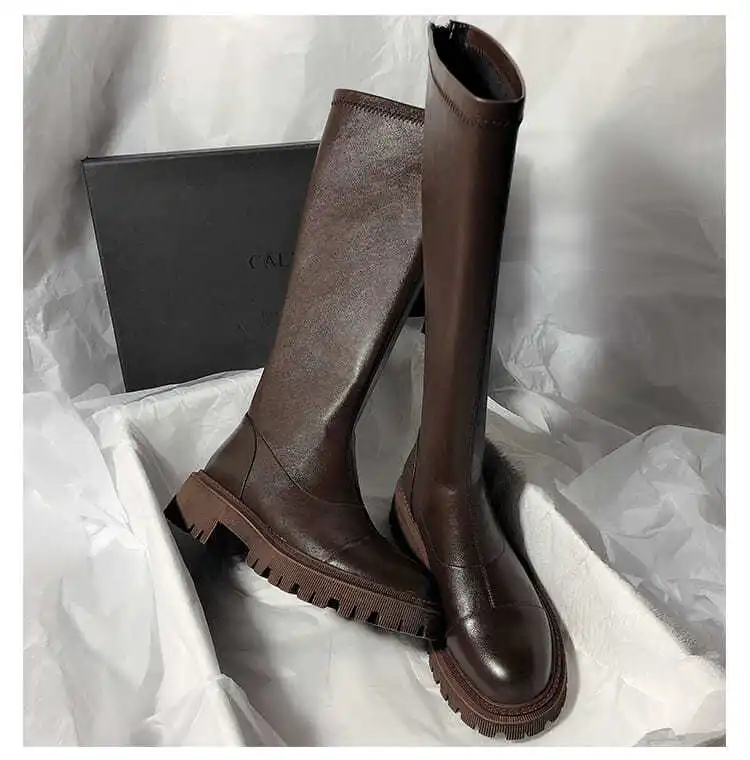 2021 зимние кожаные женские сапоги на толстой подошве, новинка, привлекательная женская обувь на высоком каблуке, женские высокие сапоги в британском стиле