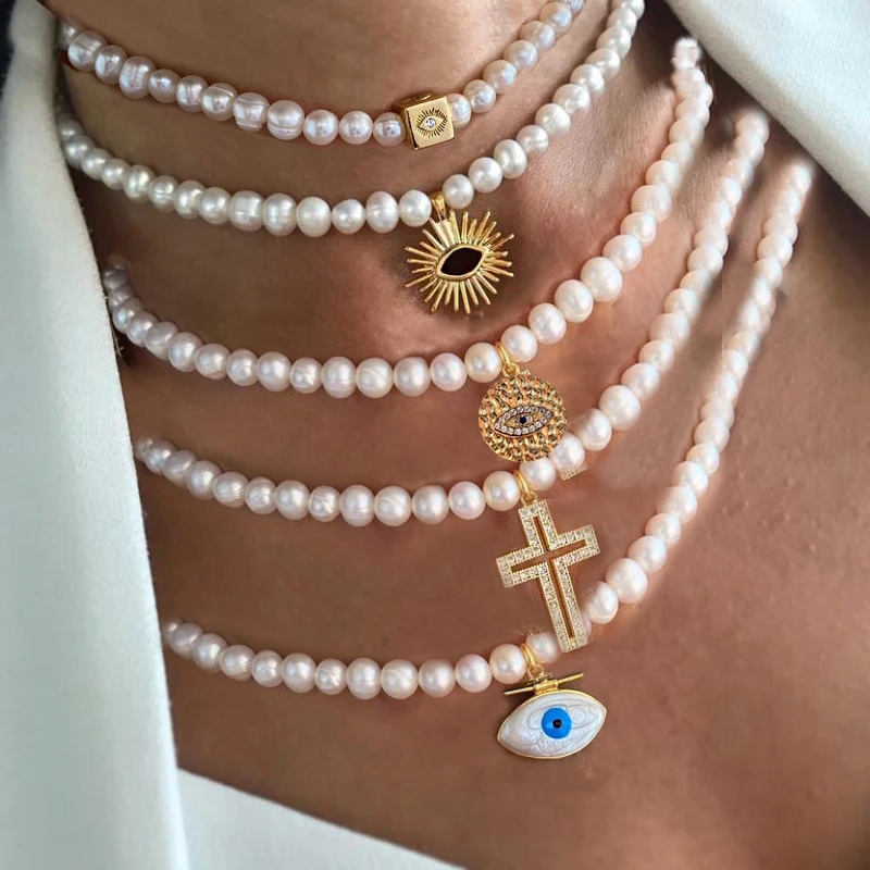 Женское Ожерелье из пресноводного жемчуга с подвеской в виде креста и злых глаз