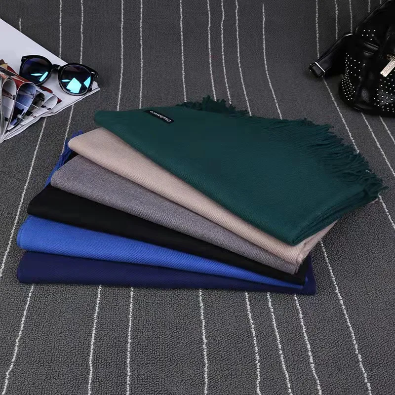 Новинка 2021, корейский вариант однотонного одеяла из кашемира, осенне-зимняя большая шаль с бахромой, шарф
