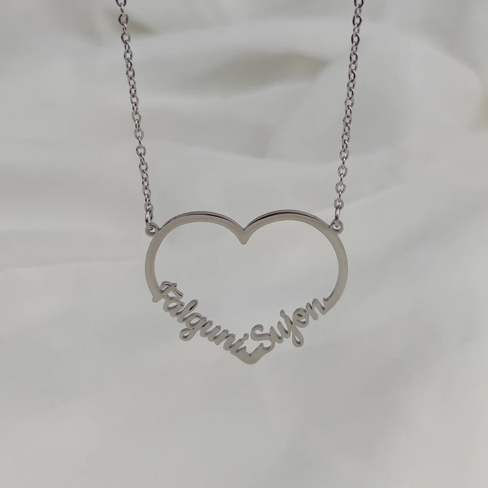 Памперская цепочка с именем сердца, подвеска, ожерелье на заказ, двойная табличка, нержавеющая сталь, ювелирные изделия, рождественский подарок