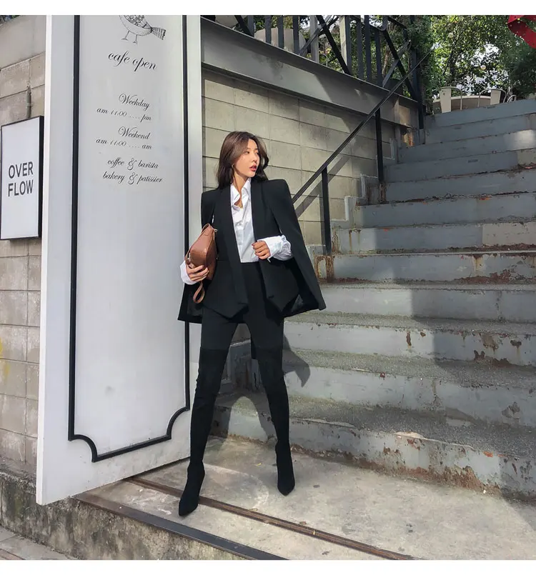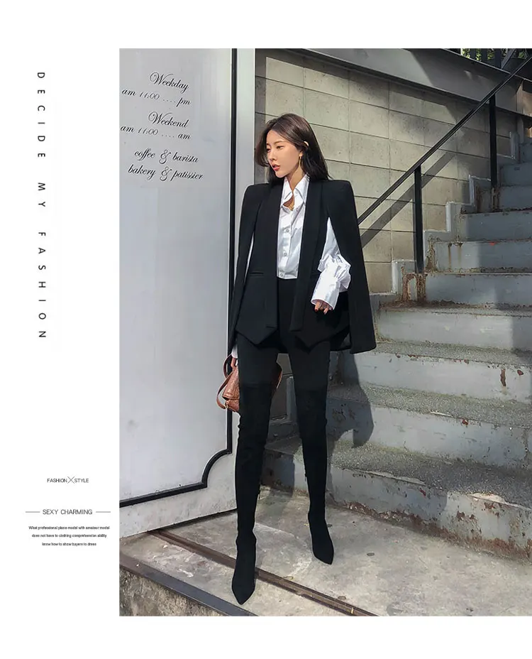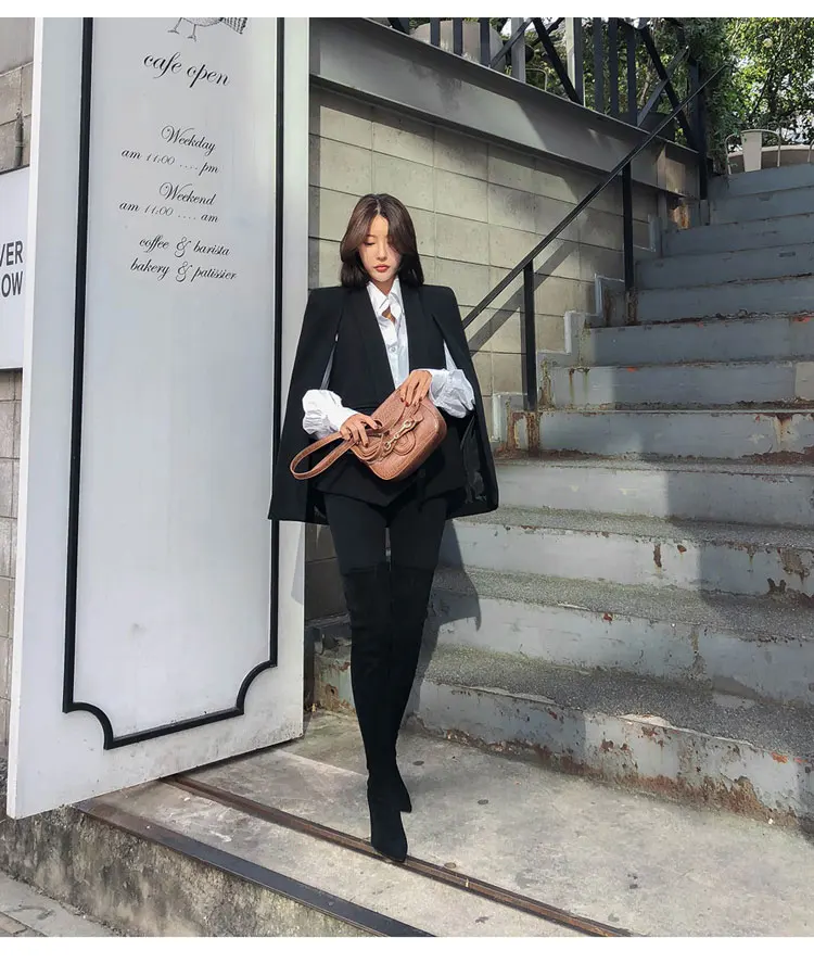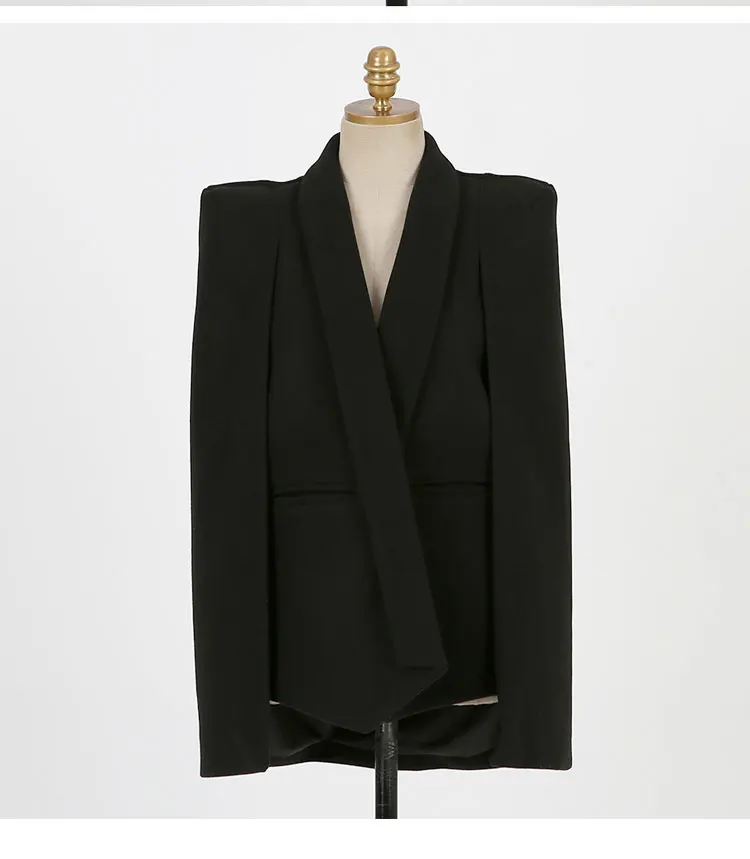 Женская винтажная накидка, черная Весенняя накидка с V-образным вырезом и разрезом, офисная одежда, верхняя одежда
