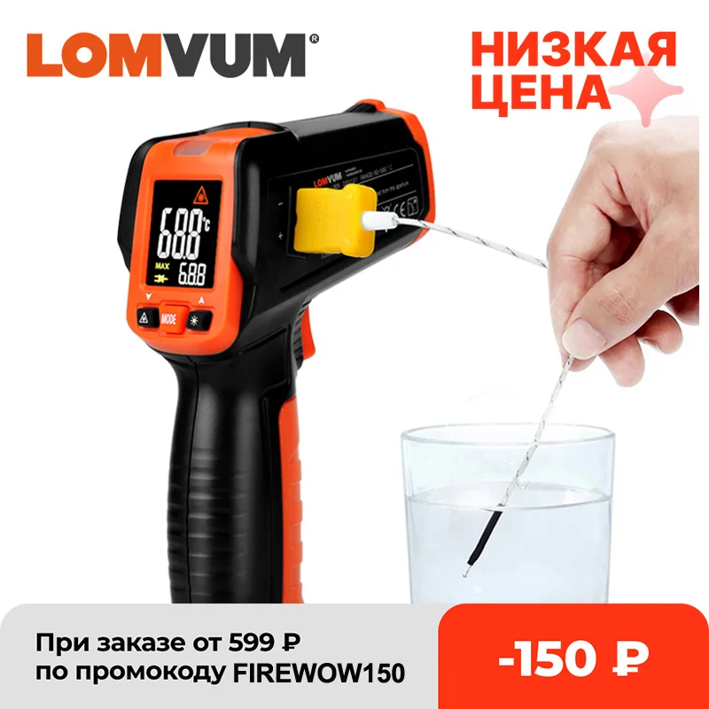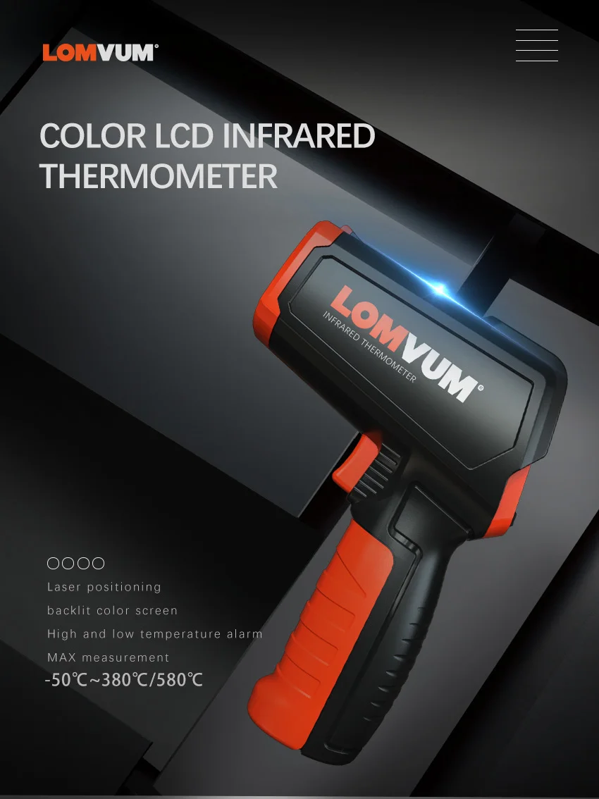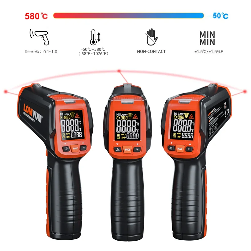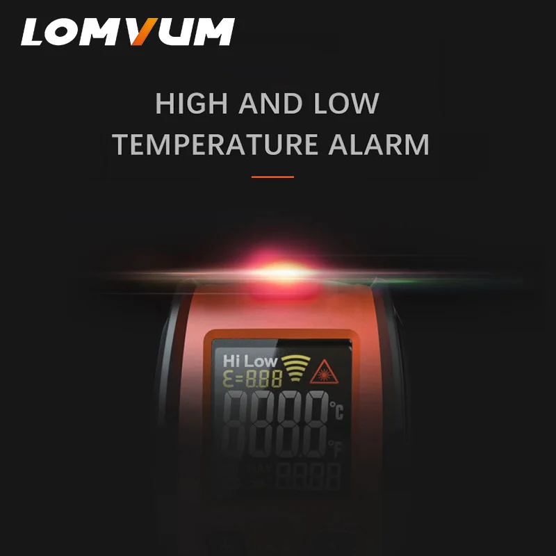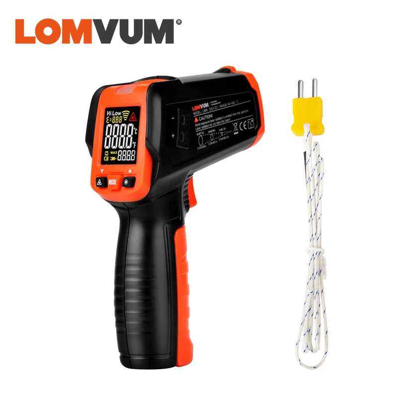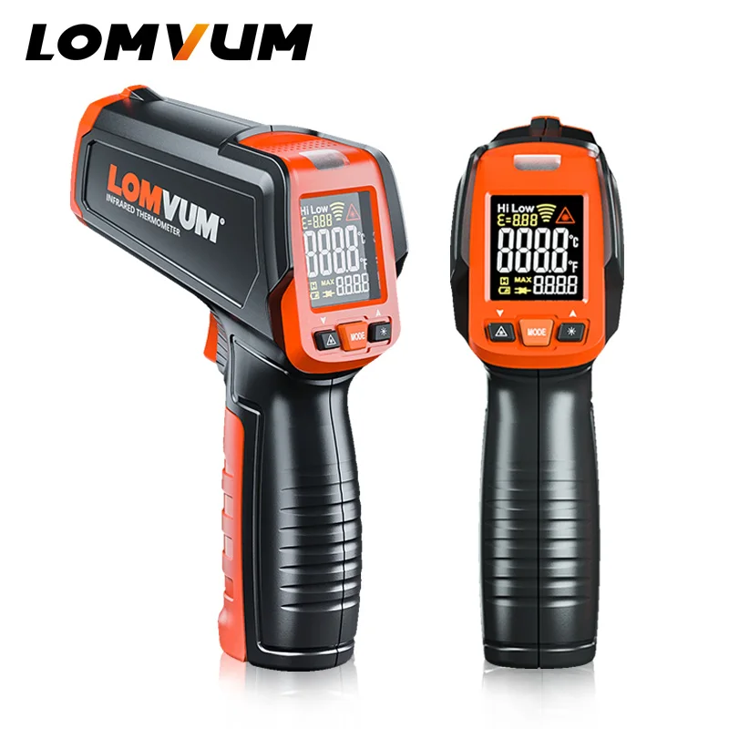 Цифровой инфракрасный термометр LOMVUM, измеритель температуры с цветным ЖК-дисплеем и сигнализацией, 50-580 C