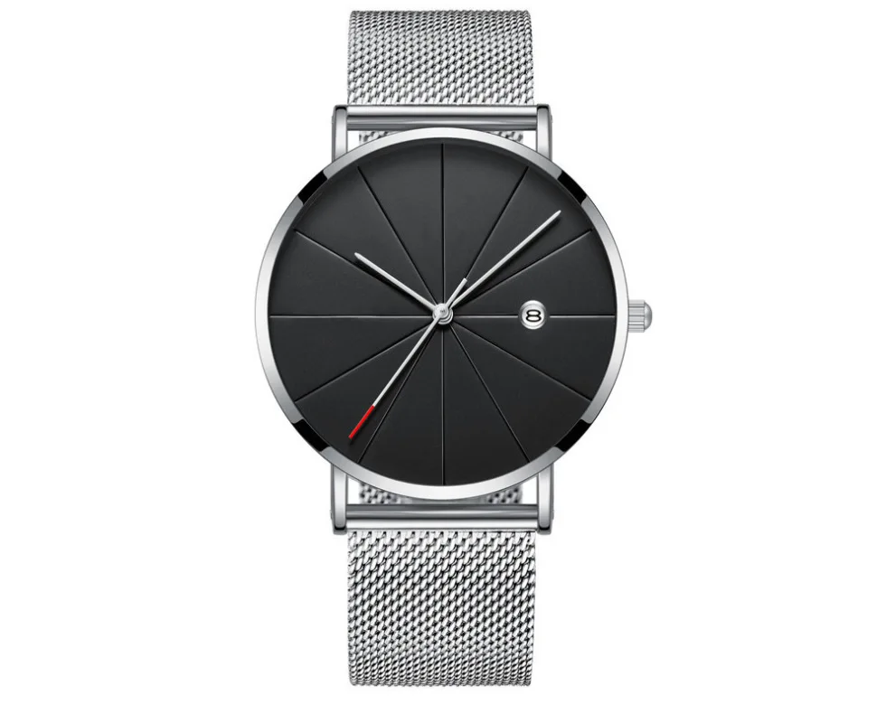 Часы мужские ультратонкие кварцевые с календарем и сетчатым браслет...