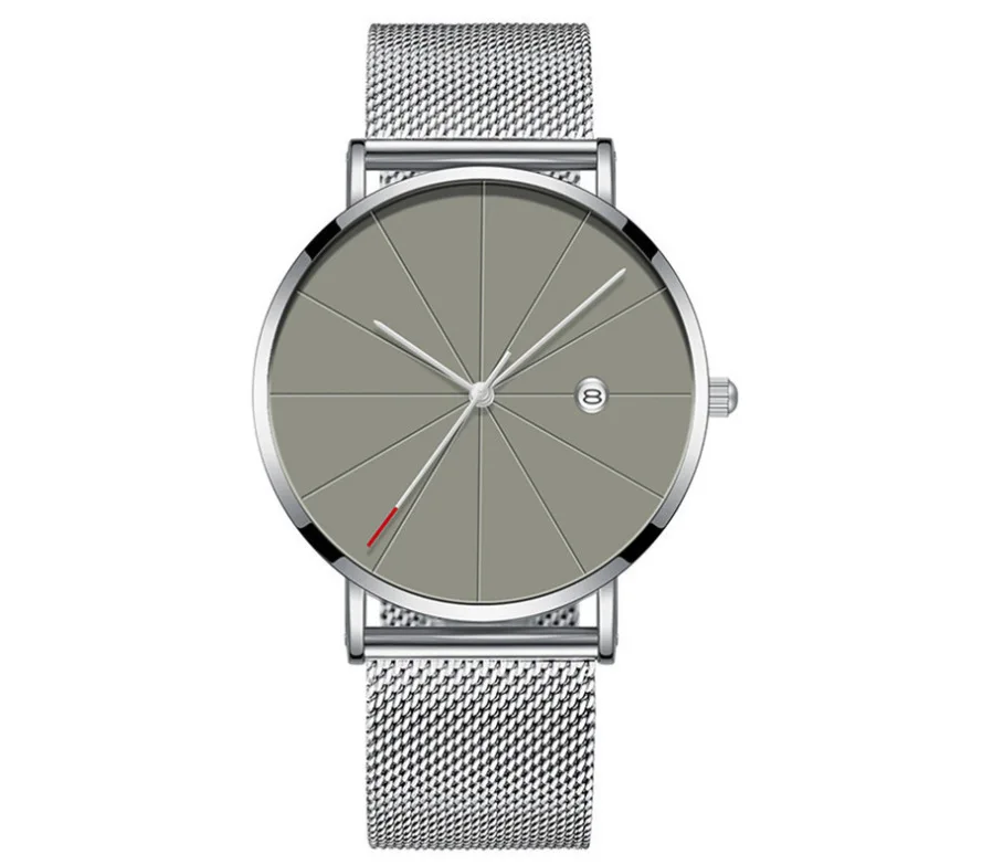 Часы мужские ультратонкие, роскошные модные, со стальным сетчатым ремешком, с календарем