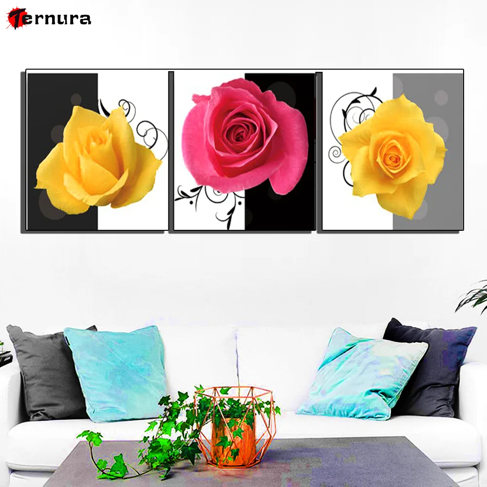 Полностью сверлильный квадратный кристалл картины цветы алмазная вышивка крестиком 5d Diy алмазная живопись мозаика современный декор 3 шт